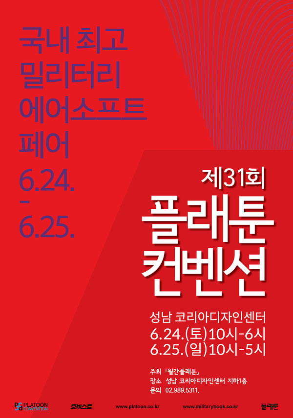 제 31회 플래툰 컨벤션 포스터입니다. 관련기사 이스라엘, 나토국가들에 다연장 수출중 Israel MLR Sales to NATO Countries 제31회 [플래툰 컨벤션] 공지 월간 플래툰 webmaster@platoon.co.kr 다른기사 보기 저작권자 © 월간 플래툰 무단전재 및 재배포 금지 당신만 안 본 뉴스 플래툰 2025년 12월호 발매 플래툰 2025년 11월호 발매 플래툰 2025년 10월호 발매 36회 플래툰 컨벤션 참가신청 안내 제36회 플래툰 컨벤션 플래툰 2025년 9월호 발매 플래툰 2025년 8월호 발매 플래툰 2025년 12월호 발매 댓글삭제 삭제한 댓글은 다시 복구할 수 없습니다. 그래도 삭제하시겠습니까? 비밀번호 닫기 기사 댓글 3 댓글 접기 댓글 내용입력 비회원 로그인 이름 비밀번호 댓글 내용입력 댓글쓰기 계정을 선택하시면 로그인·계정인증을 통해 댓글을 남기실 수 있습니다. 회원 로그인 비회원 글쓰기 이름 비밀번호 자동등록방지 로그인 옵션 창닫기 댓글목록 최신순 추천순 욕설, 타인비방 등의 게시물은 예고 없이 삭제 될 수 있습니다. oo 2023-06-22 19:52:26 더보기 삭제하기 배치도 언제 올라오나요... 당장 2일전인데 아무런 공지가 없네요 박종철 2023-06-15 07:15:55 더보기 삭제하기 행사장 입장은 몇시부터 인가요??? 비회원 2023-06-08 16:11:21 더보기 삭제하기 참가업체 확정되셨으면 부스 배치도 올려주세요. 주요기사 플래툰 2025년 12월호 발매