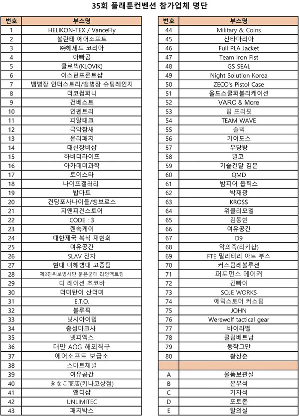 플래툰 컨벤션의 배치도입니다. 관련기사 플래툰 2025년 5월호 발매 정체불명의 "670", 실체가 드러나다 플래툰 2025년 4월호 발매 35회 플래툰 컨벤션 예고 미국이 총으로 통조림 만들던 시절 키워드 #플래툰컨벤션 #컨벤션 #35회 플래툰 컨벤션 월간 플래툰 webmaster@platoon.co.kr 다른기사 보기 저작권자 © 월간 플래툰 무단전재 및 재배포 금지 당신만 안 본 뉴스 플래툰 2025년 12월호 발매 플래툰 2025년 11월호 발매 플래툰 2025년 10월호 발매 36회 플래툰 컨벤션 참가신청 안내 제36회 플래툰 컨벤션 플래툰 2025년 9월호 발매 플래툰 2025년 8월호 발매 플래툰 2025년 12월호 발매 댓글삭제 삭제한 댓글은 다시 복구할 수 없습니다. 그래도 삭제하시겠습니까? 비밀번호 닫기 기사 댓글 0 댓글 접기 댓글 내용입력 비회원 로그인 이름 비밀번호 댓글 내용입력 댓글쓰기 계정을 선택하시면 로그인·계정인증을 통해 댓글을 남기실 수 있습니다. 회원 로그인 비회원 글쓰기 이름 비밀번호 자동등록방지 로그인 옵션 창닫기 주요기사 플래툰 2025년 12월호 발매