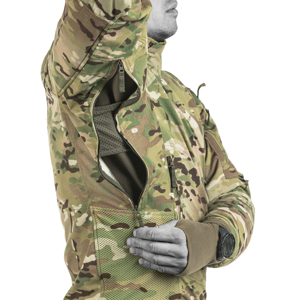 에이스 윈터 컴뱃셔츠는 외피는 방풍/발수/통기가 모두 되는 2중 소재(표면은 100%폴리에스터, 내부는 PU소재)가 사용되어 있고 내부에는 G로프트 방한소재가 사용되어 외부의 추위와 습기는 막아주면서 땀은 자연스럽게 증발해 방출되게 한다. 그러면서 측면에 지퍼를 추가해 필요하면 통기성을 높임으로써 내부 온도와 습기를 유지할 수 있게 하며, UF프로의 에어팩 완충 라이너를 어깨와 등에 설치해 배낭등을 멜 때의 완충효과도 기대할 수 있게 했다.