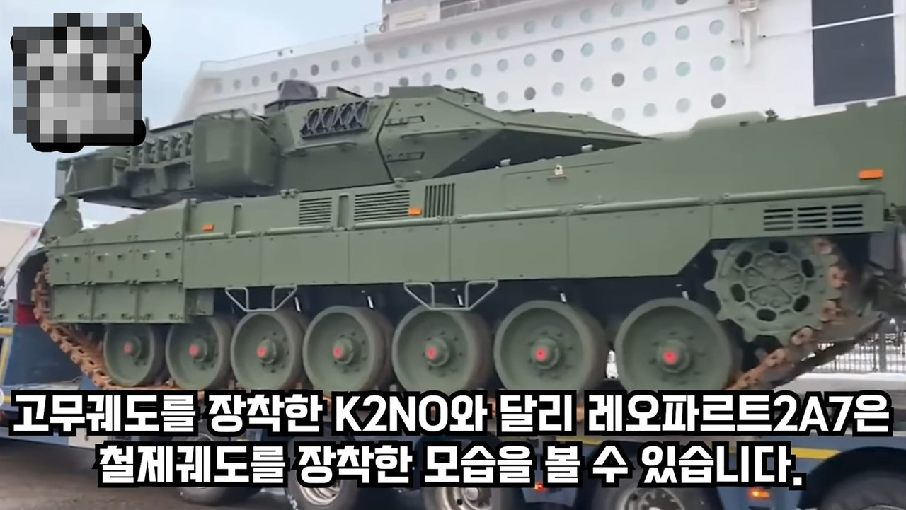 해당 채널에서 노르웨이가 평가중인 흑표(K2NO)와 레오파르트2A7에 대해 올린 동영상에서, 우리 전차는 "고무궤도"를 장착했는데 레오파르트는 "철제 궤도"를 장착했기 때문에 노르웨이 장교들이 더 높게 평가한다고 주장한 것이다.