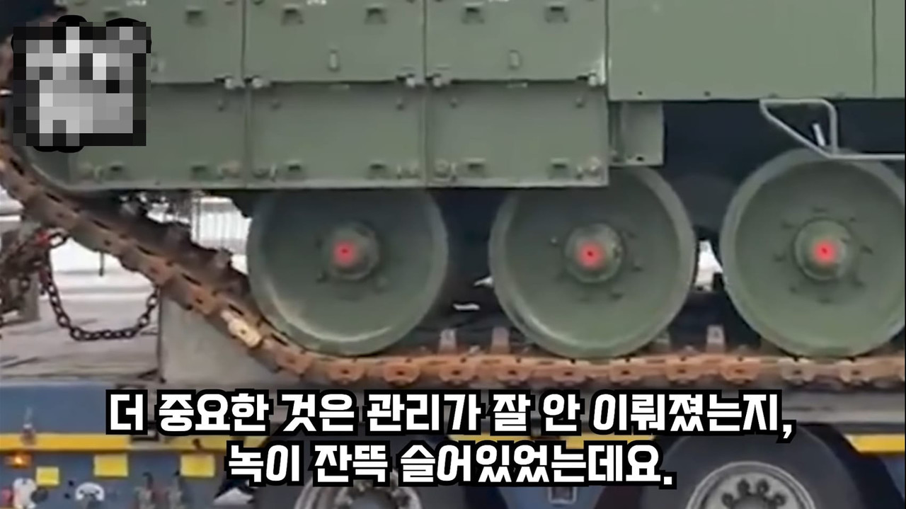 또 레오파르트2A7의 궤도에 녹이 잔뜩 슬어있다며 관리가 잘 안 이뤄졌다는 식으로 표현하는데, 짧은 기간에 이런저런 테스트를 치루다 보면 이럴 수도 있지만 그렇다고 이게 관리가 잘 안 이뤄졌다고 할 수만도 없다. 내구성 자체에 지장이 없다면 표면에 녹이 좀 슨 정도는 바쁠 때 매번 굳이 다 제거하거나 도색해서 덮을 필요는 없기 때문이다.